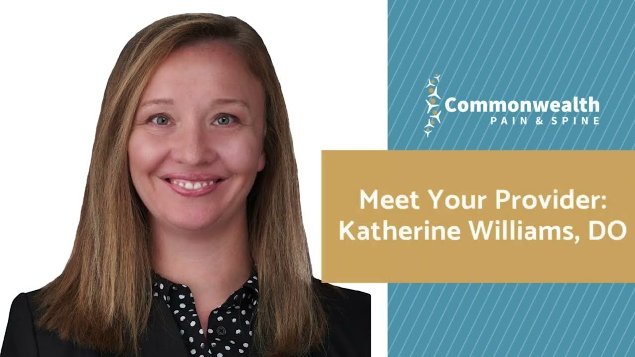 Dr. Katherine Williams, D.O., embodies excellence and compassion as a dedicated member of the Commonwealth Pain & Spine team since 2021. Grounded in a diverse educational background, Dr. Williams brings a unique perspective to her practice, ensuring comprehensive care for her patients.